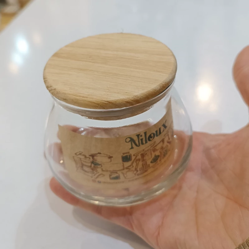 بانکه شیشه ای با در بامبو واشردار مناسب برای ادویه ومربا و خوراکی های که نباید در معرض هوای محیط باشد